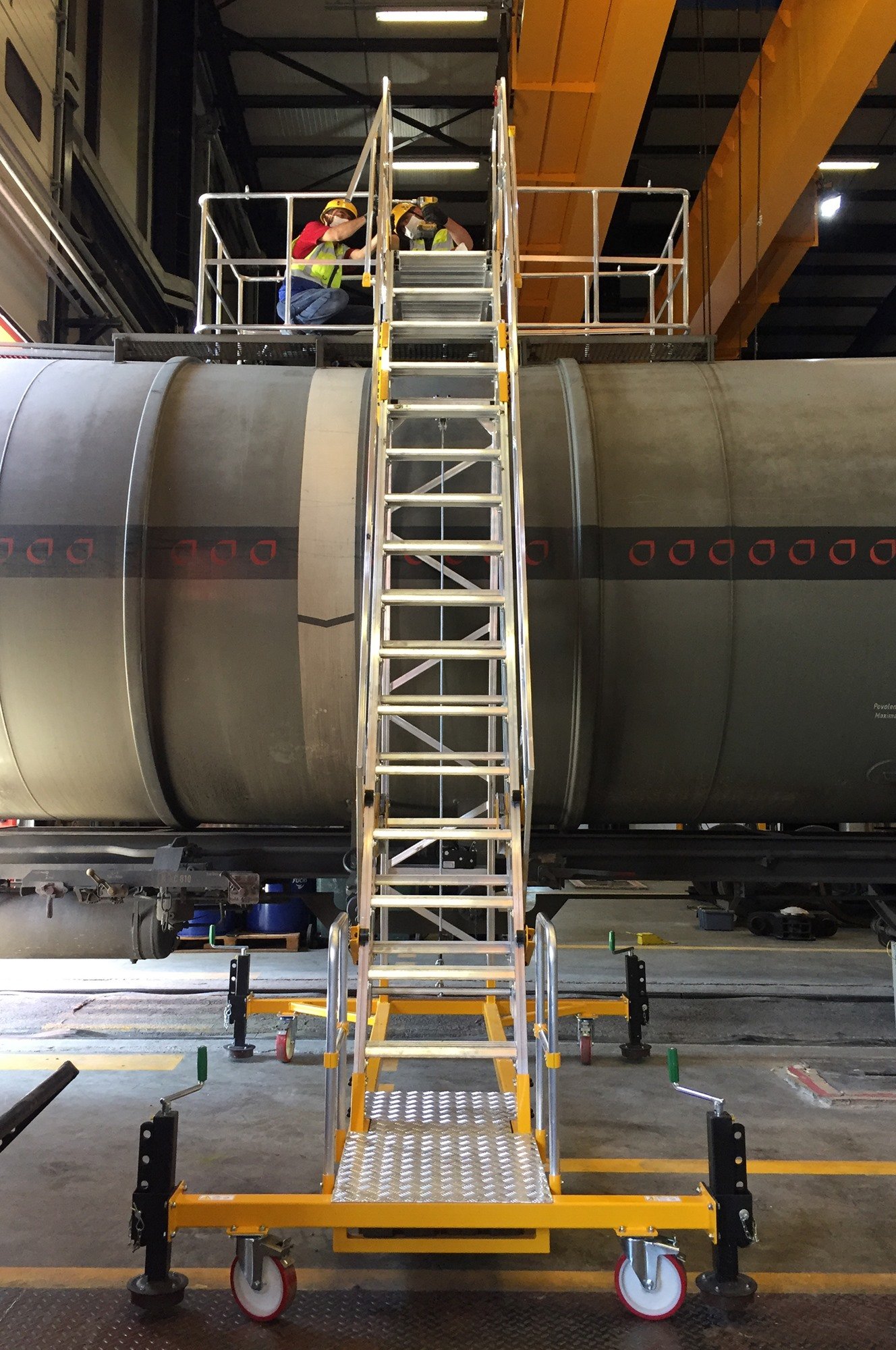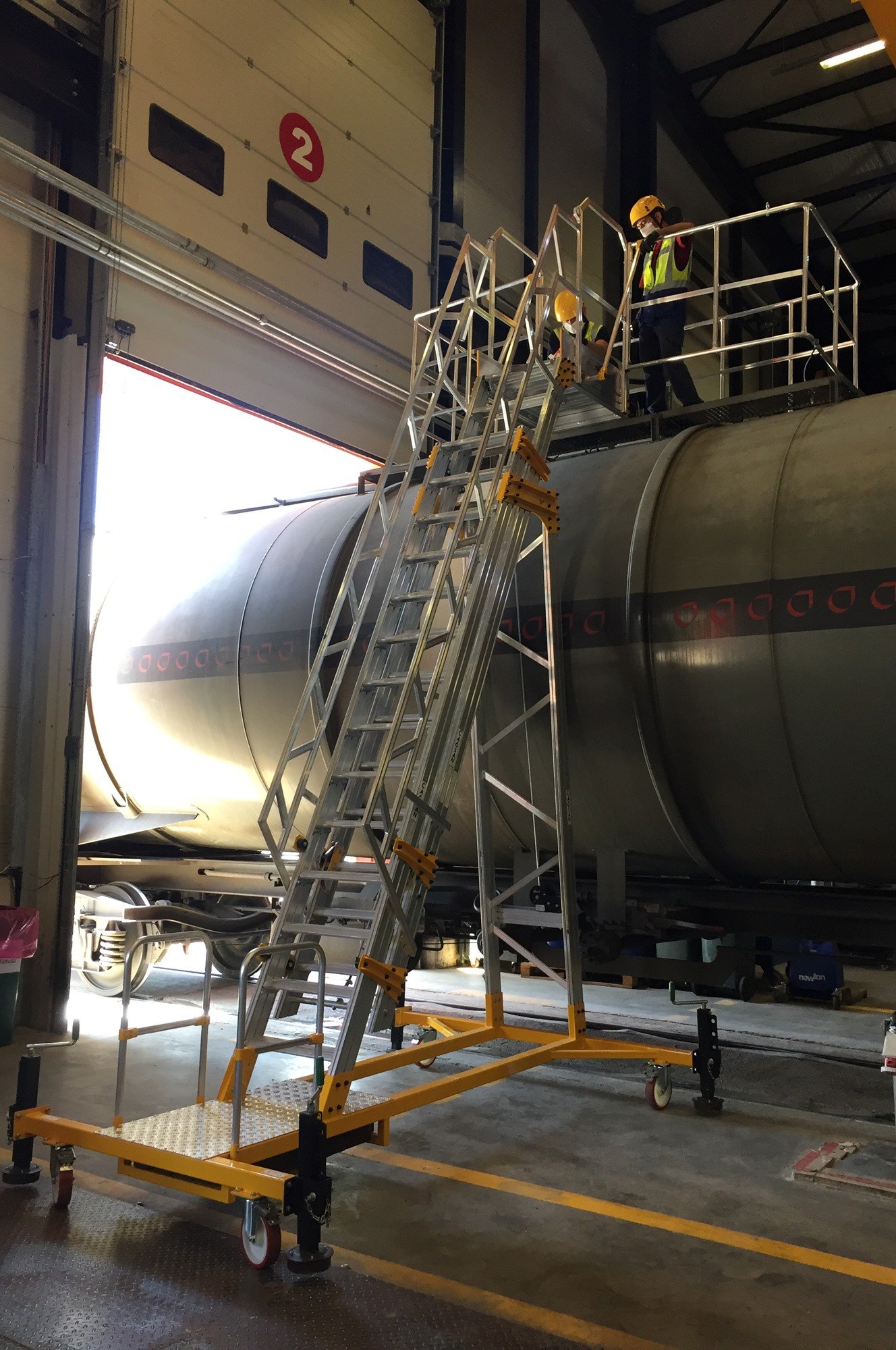 Yüksekliği ayarlanabilir Platformlar tanker merdivenleri olarak da adlandırılmaktadır. Platform yüksekliği çıkrıklı makara yardımıyla kolayca ayarlanmaktadır. Üst kısımda bulunan platformdan tanker üzerine rahatlıkla geçiş yapabilirsiniz. Tanker üzerinde çalışırken ise platformun üzerine bağlı bulunan ve etrafınızı tamamen saran korkuluklar sayesinde güvenli bir çalışma ortamı sağlarlar. Basamak sistemi üzerinde bulunan özel mafsal kilit sistemi kullanım sırasında size ekstra güvenlik sağlar.