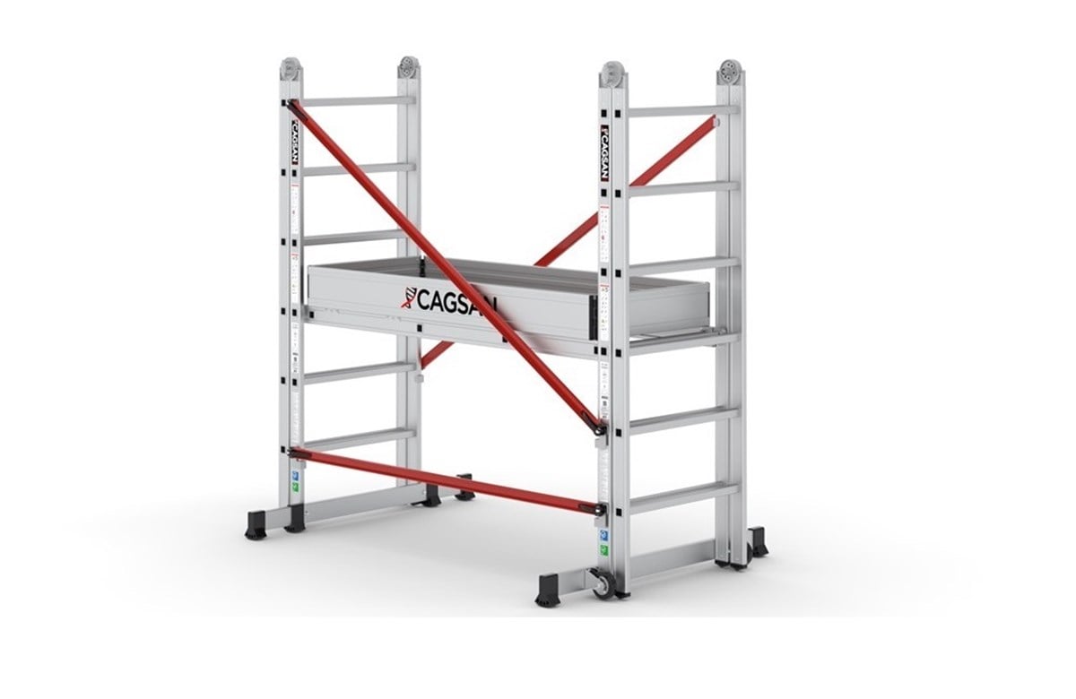 İskele ve iki tip merdiven olarak kullanılabilen bu ürün, oldukça pratik kurulum ve kullanıma sahiptir. İskelenin platformu çıkarılıp, çapraz bağlantıları sökülerek ürünü A tipi ve dayamalı olarak kullanabilirsiniz.