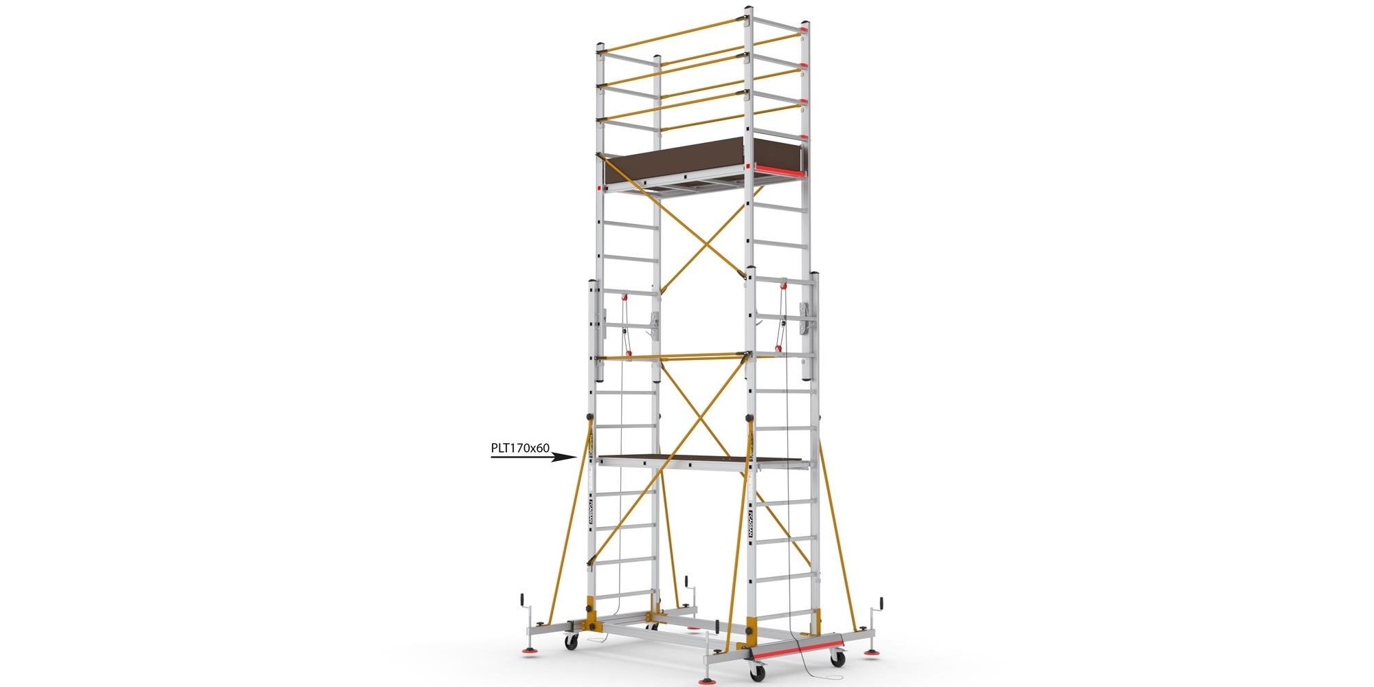 İki Parçalı Alüminyum iskeleler, tüm dünyada yürürlüğe girmiş olan Yeni Mobil İskele standardı olan EN 1004-1:2020 ye sahip olan iskele gruplarımızdandır. Yenilenen standarda göre S005_XLN, S006_XLN ve S008_XLN kodlu ürünlerimizde ekstra 1 adet daha platform bulunmaktadır