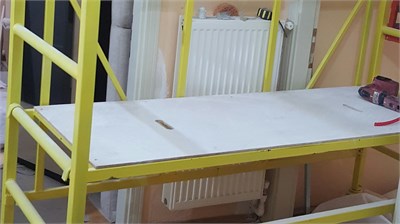 İskele platformu 30mm*50mm*2mm metal kontrüksiyon üzerine osb vidalı 15kg ve 1 parçadır.