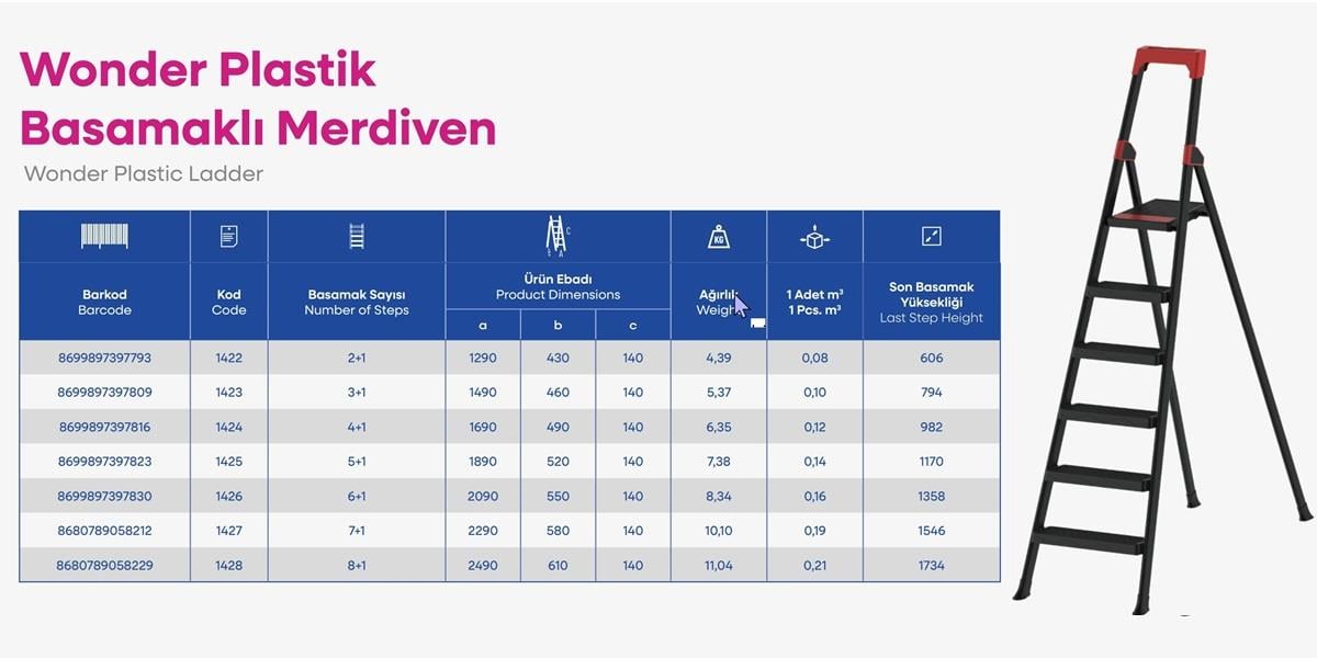 Saraylı Wonder 2 Plastik Basamaklı Tablalı Metal Merdiven