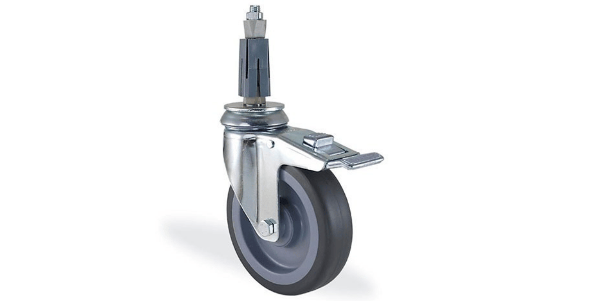 OYNAK SOKET BAĞLANTILI, MAVİ PASİFİZE EDİLMİŞ GALVANİZ KAPLI, TEKERİ VE MAŞAYI KİLİTLEYEN FREN SİSTEMLİ MAŞA