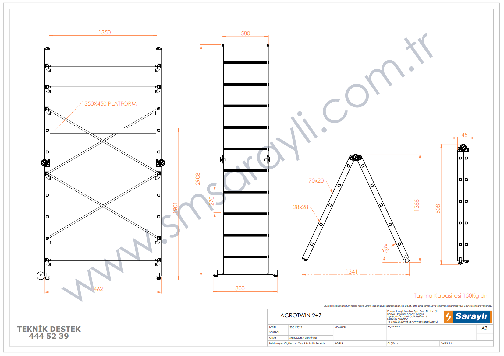 Saraylı 7510 A Acrotwin Katlanır Merdivenli Pratik İskele 3.9M