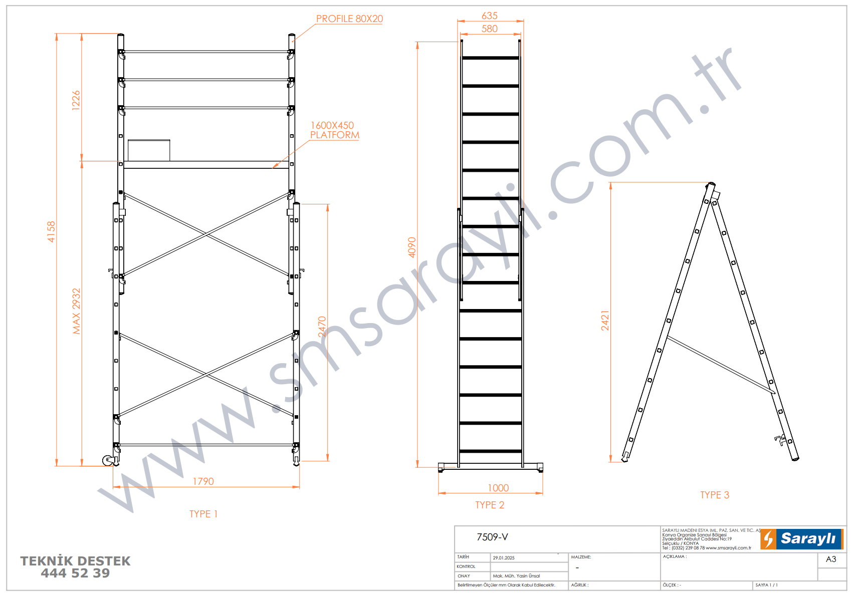 Saraylı 7518-V Velly Çok Amaçlı İskele Merdiveni 4.9m