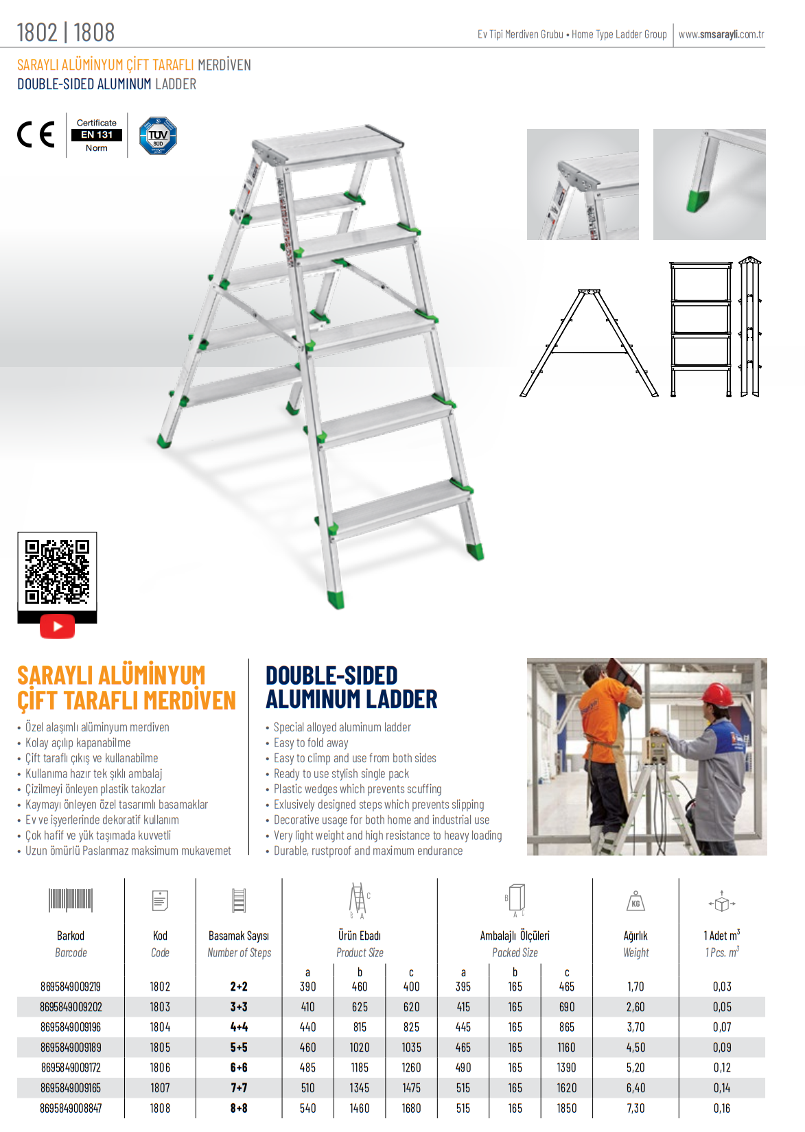 Özel alaşımlı alüminyum merdiven Kolay açılıp kapanabilme Çift taraflı çıkış ve kullanabilme Kullanıma hazır tek şıklı ambalaj Çizilmeyi önleyen plastik takozlar Kaymayı önleyen özel tasarımlı basamaklar Ev ve işyerlerinde dekoratif kullanım Çok hafif ve yük taşımada kuvvetli Uzun ömürlü Paslanmaz maksimum mukavemet