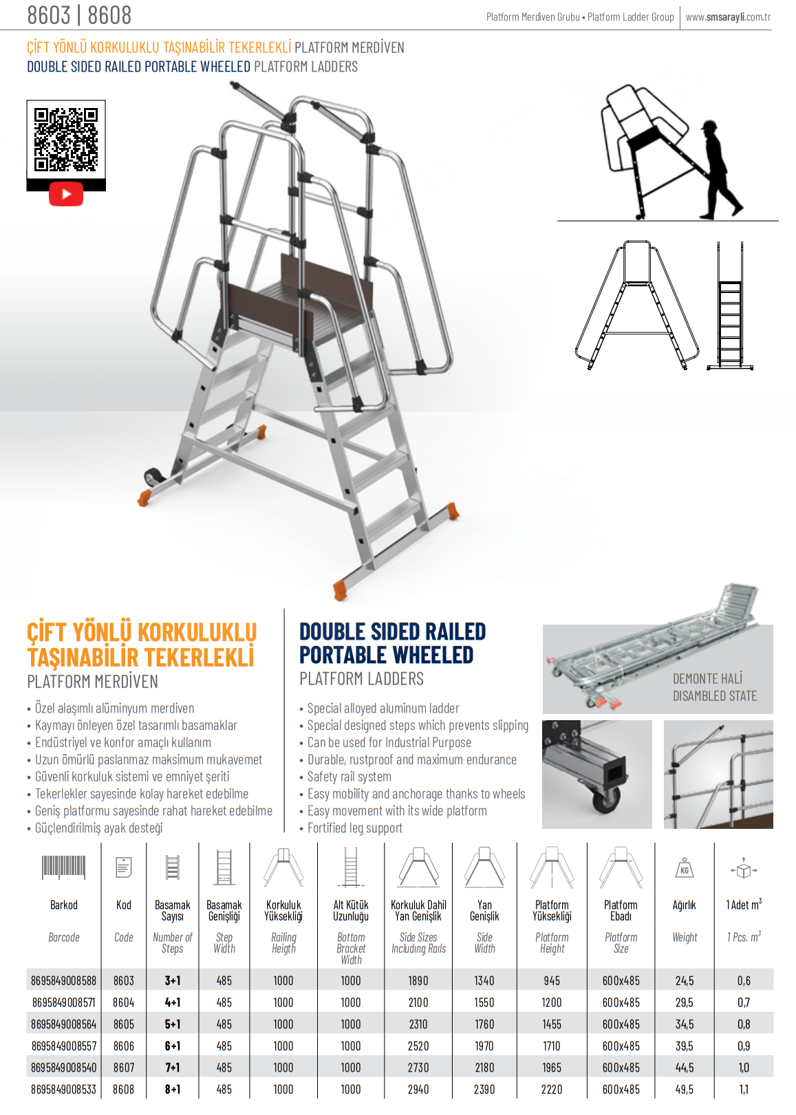 Saraylı Çift Yönlü Tekerlekli Alüminyum Platform (8603)