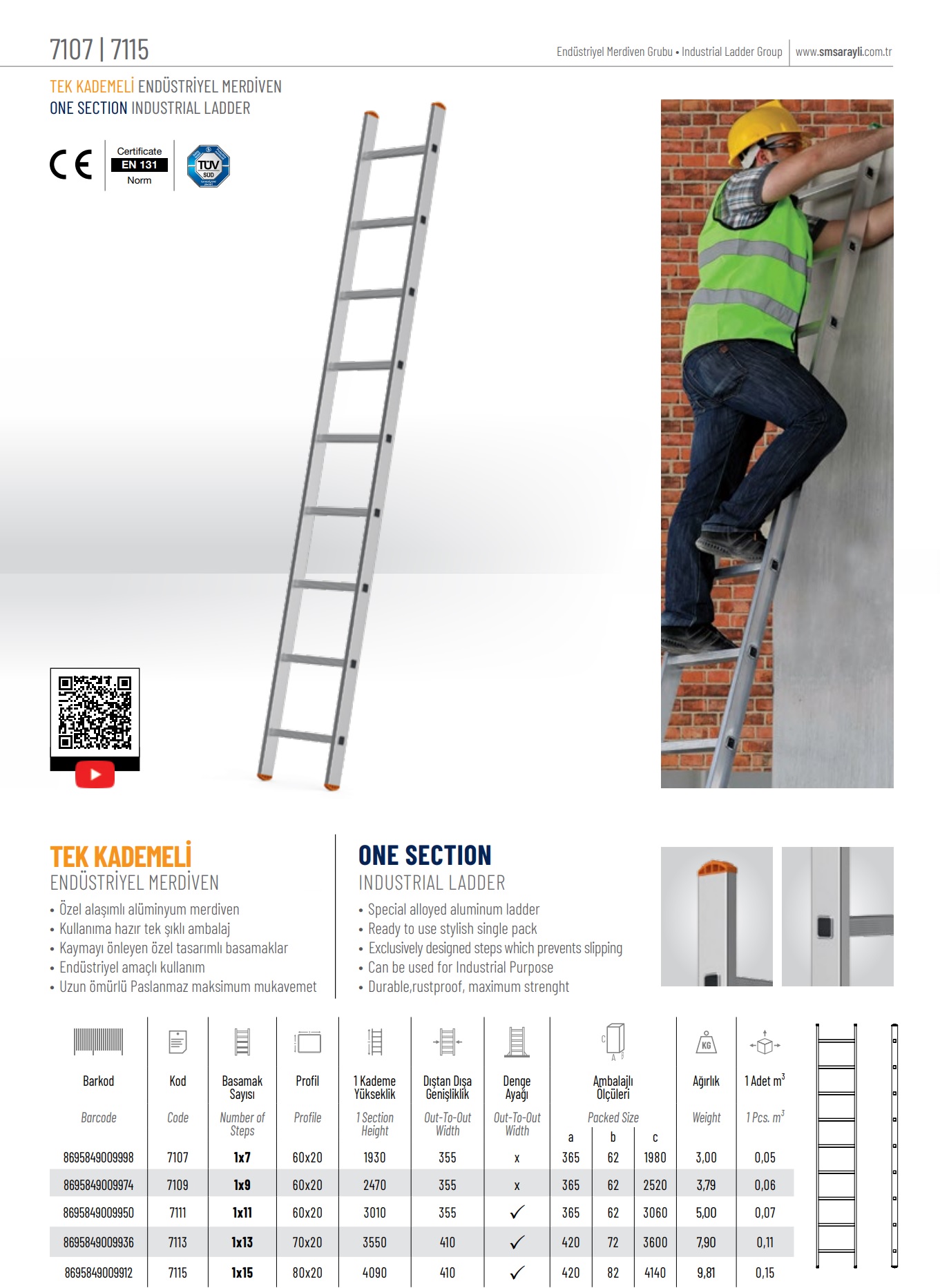 Özel alaşımlı alüminyum merdiven Kullanıma hazır tek şıklı ambalaj Kaymayı önleyen özel tasarımlı basamaklar Endüstriyel amaçlı kullanım Uzun ömürlü Paslanmaz maksimum mukavemet Ürün kullanma klavuzu için tıklayınız.